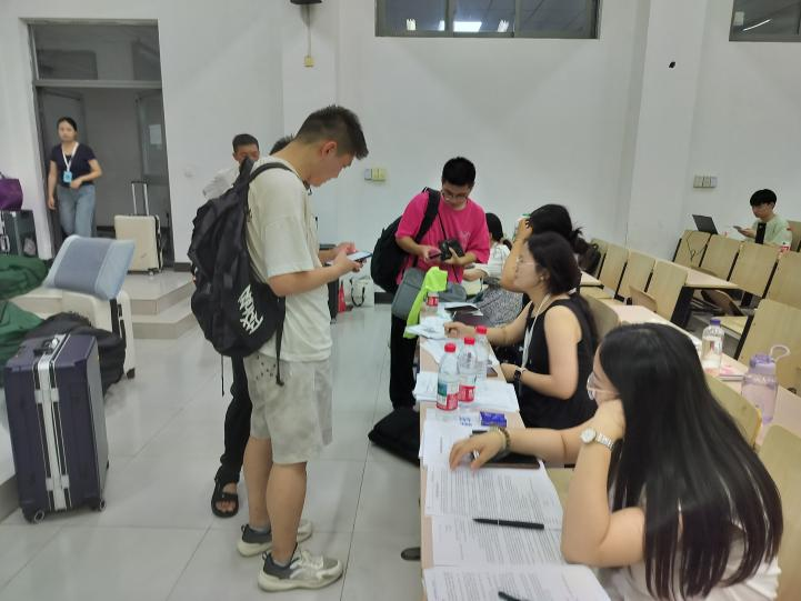 同学们怀着激动的心情陆续抵达集训点。一入校门,便有热情的工作人员上前迎接,引导他们前往签到处。签到处的老师们耐心地为每一位同学办理签到手续,发放集训资料,同时细心地解答同学们的各种疑问。随后,工作人员协助同学们搬运行李,指引他们前往宿舍办理入住。整个报到过程有条不紊,同学们在轻松愉快的氛围中完成了入营的第一步。
